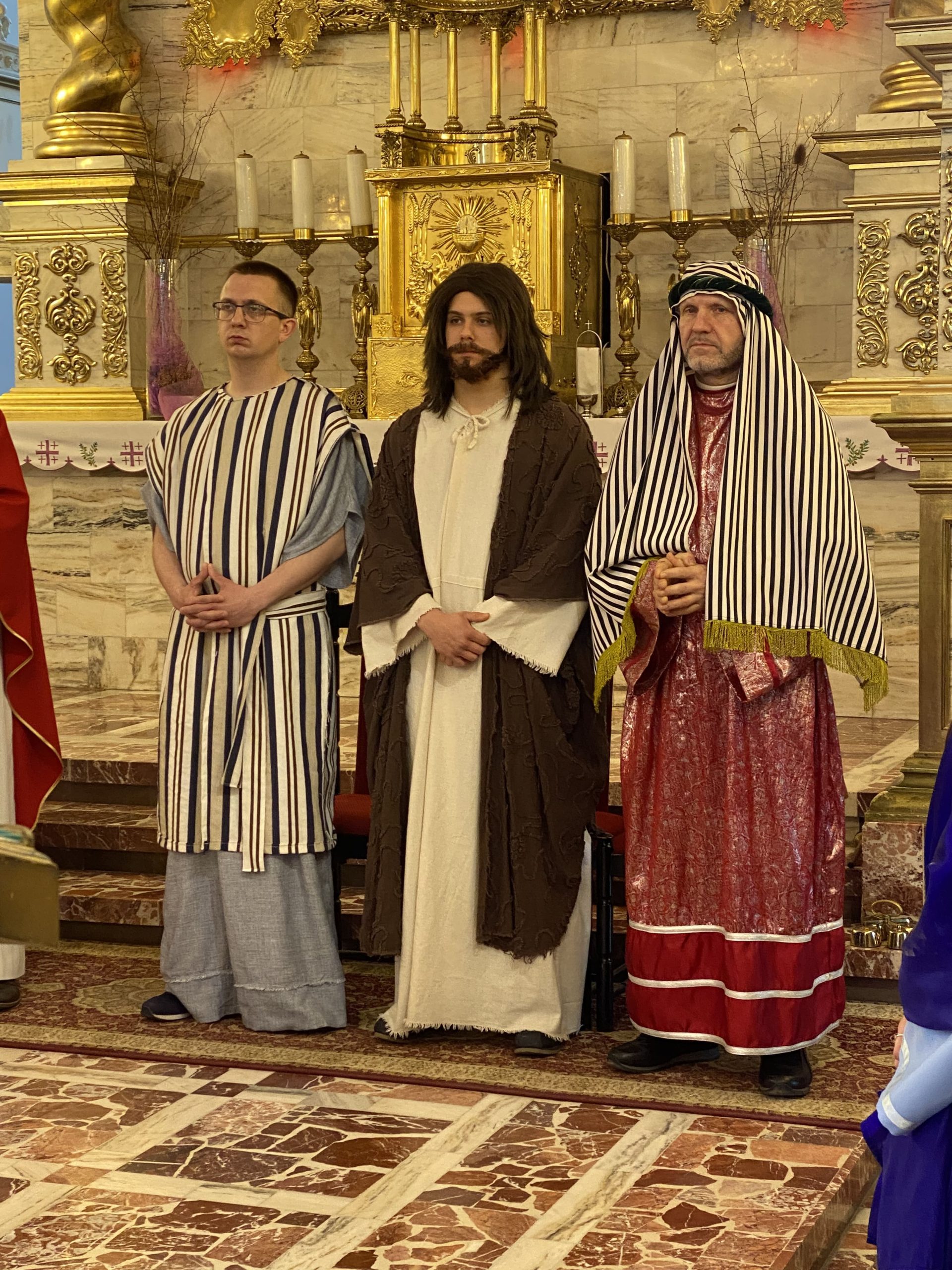 Niedziela Palmowa, czyli Męki Pańskiej, wprowadza nas coraz bardziej w nastrój Świąt Paschalnych. Kościół zachęca, aby nie ograniczać się tylko do radosnego wymachiwania palmami i krzyku: ” Hosanna Synowi Dawidowemu!”, ale wskazuje drogę jeszcze dalszą – ku Wieczernikowi, gdzie „chleb z nieba zstąpił”. Potem wprowadza w ciemny ogród Getsemani, pozwala odczuć dramat Jezusa uwięzionego i opuszczonego, daje zasmakować Jego cierpienie w pretorium Piłata i odrzucenie przez człowieka. Wreszcie zachęca, aby pójść dalej, aż na sam szczyt Golgoty i wytrwać do końca. Chrześcijanin nie może obojętnie przejść wobec wiszącego na krzyżu Chrystusa, musi zostać do końca, aż się wszystko wypełni… Musi potem pomóc zdjąć Go z krzyża i mieć odwagę spojrzeć w oczy Matce trzymającej na rękach ciało Syna, by na końcu wreszcie zatoczyć ciężki kamień na Grób. A potem już tylko pozostaje mu czekać na tę Wielką Noc… To właśnie daje nam Wielki Tydzień, rozpoczynający się Niedzielą Palmową. Wejdźmy zatem uczciwie w Misterium naszego Pana Jezusa Chrystusa…